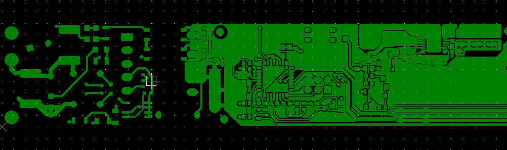 Kaikki vihreät alueet ovat kuparia. Huomaa laudan vasemman ja oikean puolen peittoalueen kokonaisero.